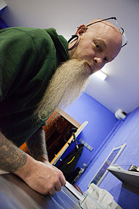 "Ein Beruf sollte Spaß machen" sagt James. Und dass es Ihm Spaß macht merkt man an der guten Laune, die im Kawumm Piercing Studio vorherrscht. James kümmert sich auch um Fragen der Schmuckauswahl, Sonderbestellungen und um die Nachsorge. Ihr könnt jederzeit unverbindlich reinschauen um Eure Fragen bezüglich Piercing zu stellen.