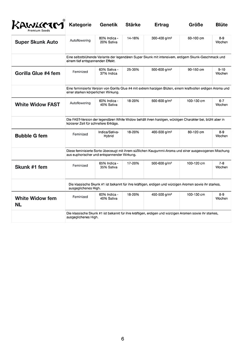 Aromen, Wirkungen und Anbaueigenschaften findest Du in der Übersicht auf dieser Seite. Kawumm liefert Qualität seit 1989